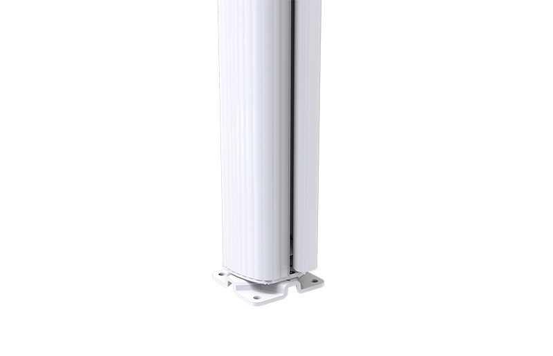 Toujours plus polyvalent, le coffre de notre store latéral peut être monté aisément et sans problème grâce aux points de fixation universels au mur mais également au sol via une platine de fixation. Il suffit de faire pivoter le coffre dans cette platine préalablement fixée au sol et le tour est joué. La barre d'appui peut être fixée dans une douille au sol ou sur un socle. Très pratique, celle-ci peut également être amovible grâce à son système de platine au sol coulissante.