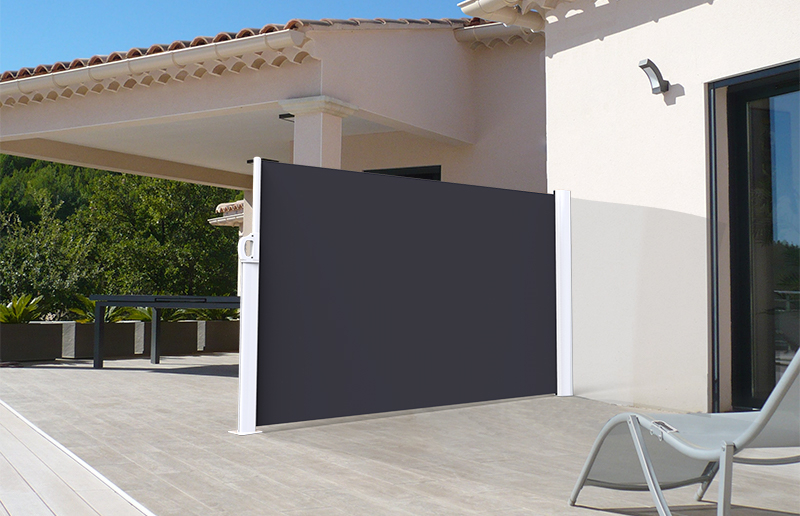 Ce type de store paravent existe en 2 hauteur : 1.6 m ou 1.8 m et une avancée exclusive allant jusqu'à 3.5 mètres.
